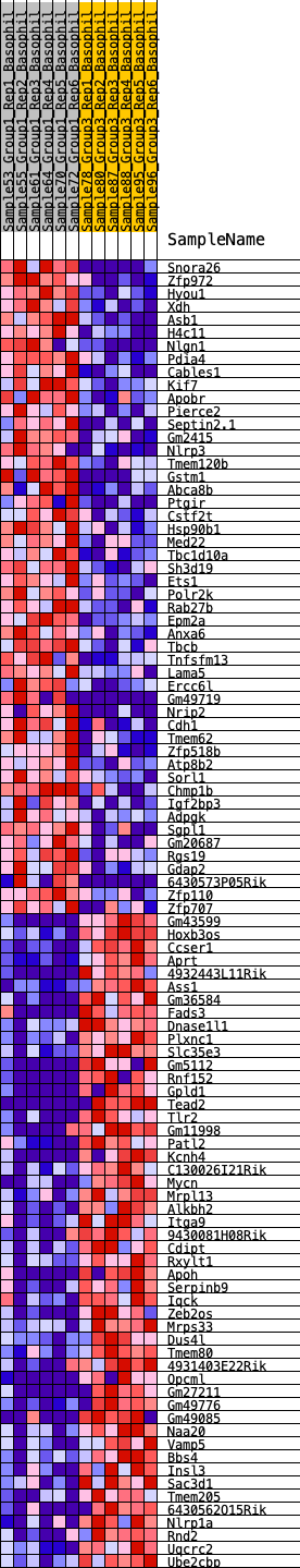 Heat Map of the top 50 features for each phenotype in Basophil.Basophil_Pheno.cls#Group1_versus_Group3