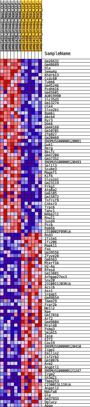 Heat Map of the top 50 features for each phenotype in CLP.Basophil_Pheno.cls#Group1_versus_Group2