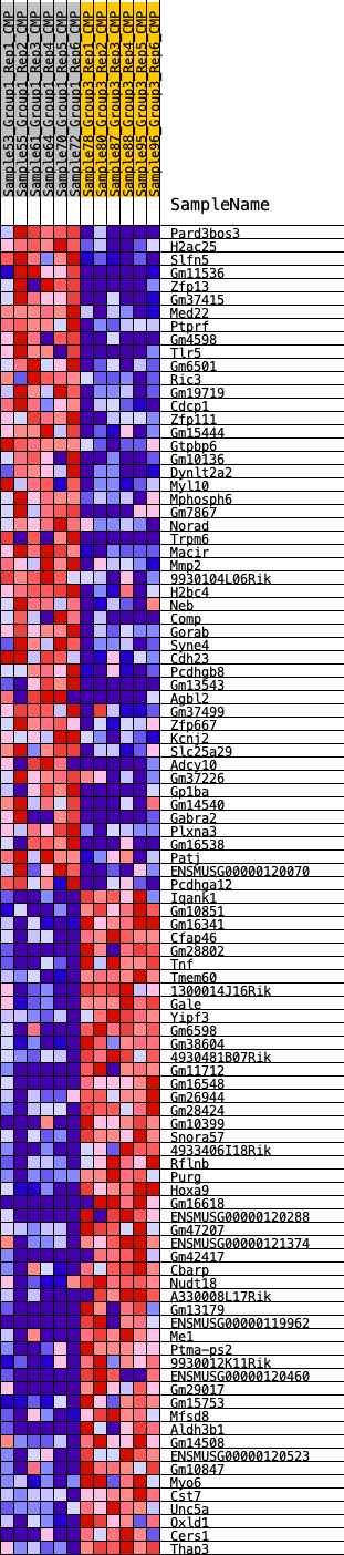 Heat Map of the top 50 features for each phenotype in CMP.CMP_Pheno.cls#Group1_versus_Group3