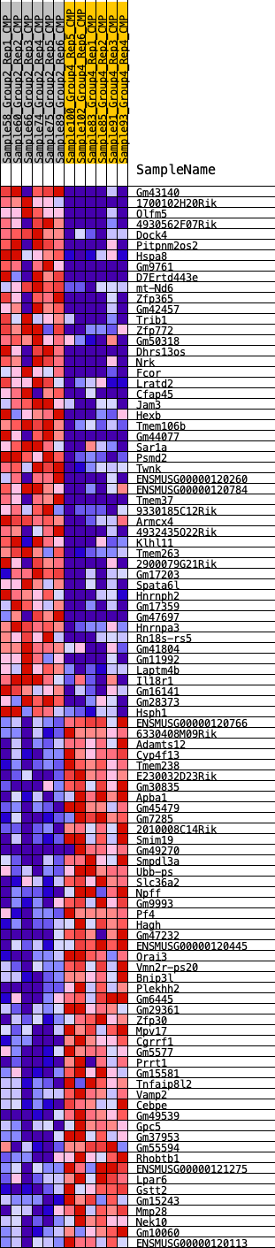 Heat Map of the top 50 features for each phenotype in CMP.CMP_Pheno.cls#Group2_versus_Group4