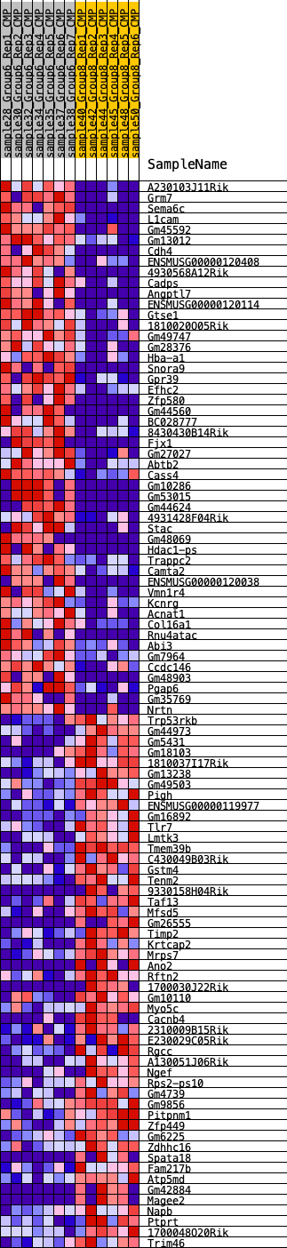 Heat Map of the top 50 features for each phenotype in CMP.CMP_Pheno.cls#Group6_versus_Group8