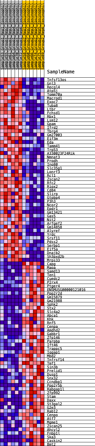Heat Map of the top 50 features for each phenotype in Eosinophil.Eosinophil_Pheno.cls#Group1_versus_Group2
