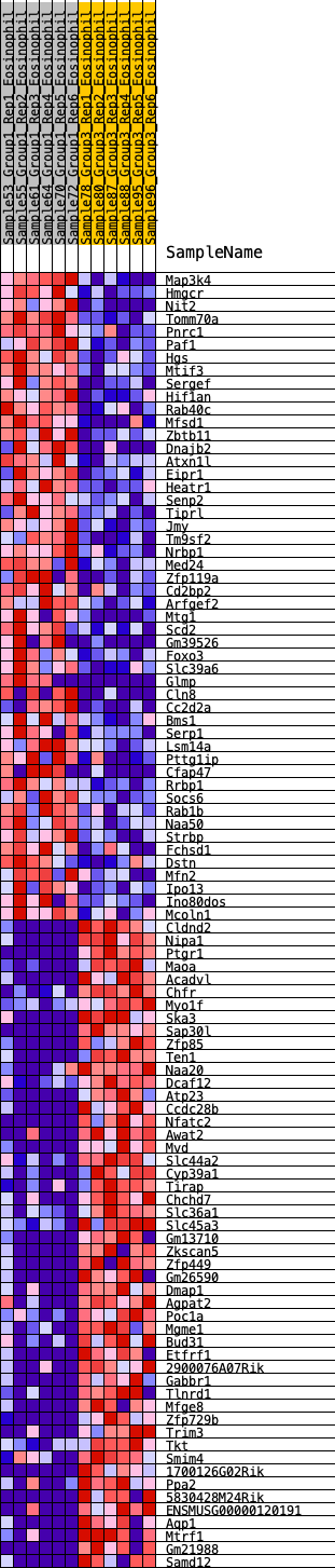Heat Map of the top 50 features for each phenotype in Eosinophil.Eosinophil_Pheno.cls#Group1_versus_Group3