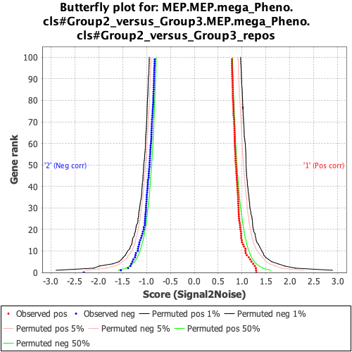 Gene markers for the 1 versus 2 comparison