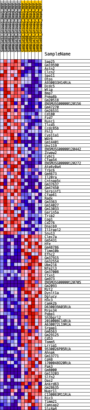 Heat Map of the top 50 features for each phenotype in MPP.MPP_Pheno.cls#Group1_versus_Group2